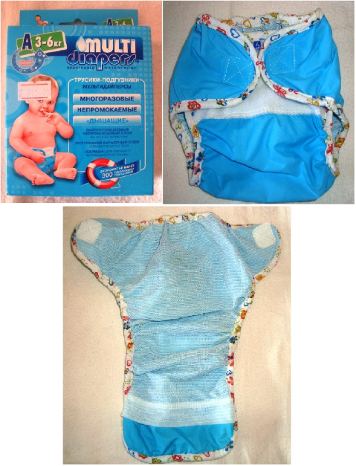 Первые мною купленные были в синенькой пачке на 3-6 кг, они удобные, не натирают, в них множно вкладывать в сеточку вкладышы (продается отдельно или марлечку). Вкладыши для них есть специальные продаются по 4 шт в пачке, но я не стала покупать (у нас стоят 4 шт - 300 руб), т.к. у нас много марли, и я вкладываю ее. Сразу в первый же день поняла, что таких трусиков надо 2-3 штучки так точно, т.к. по бокам ткань-оконтовка все равно промокает и ее надо сушить. В сеточку вкладывать мне не очень нравиться, поэтому я ложу марлю сверху. Липучки очень удобные, сохнут довольно быстро, хватает до того как меняю на другие.