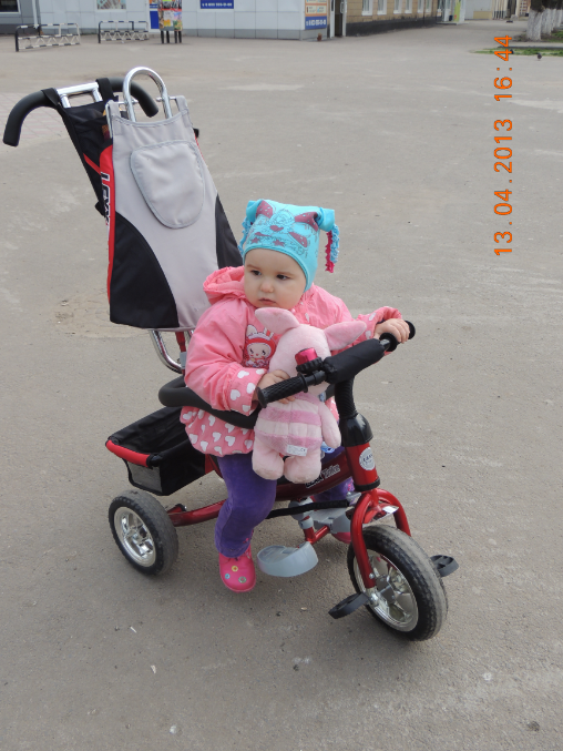Ох, классный какой!!!! И маленькой явно нравится)))))))А мы с мужем на "консилиуме" решили, что, если доча затребует велик, сначала возьмем его на месяц в прокате (у нас в городе есть такой) и посмотрим будет она на нем ездить или недельку побалуется и назад в коляску пойдет)))))))))