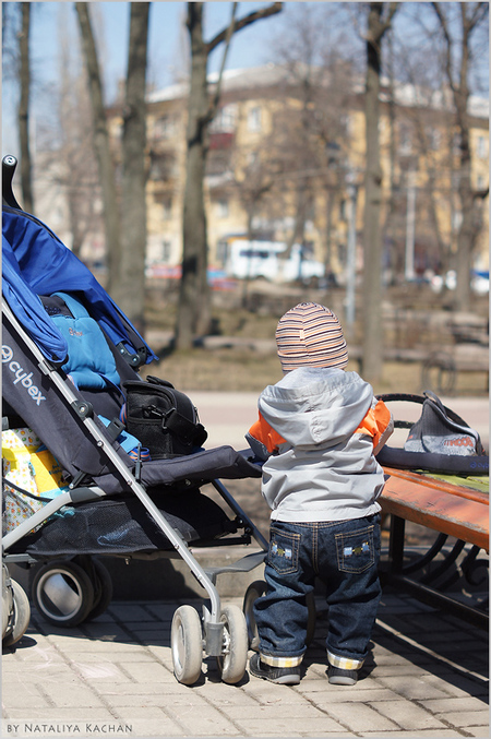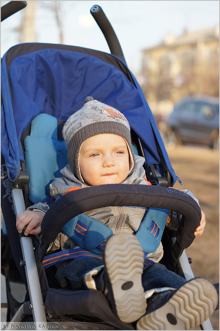 В общем, коляской я абсолютно довольна. Теперь мы на прогулку как на праздник едем :) Кстати, т.к. город у нас колясками не разбалованный, то ни одного сайбекса я у нас не видела :) В магазинах их не продают, т.е. это только заказывать. Мелочь, а приятно :) Мы одни на такой карете в нашем районе точно :))) Ну и пара фоточек: