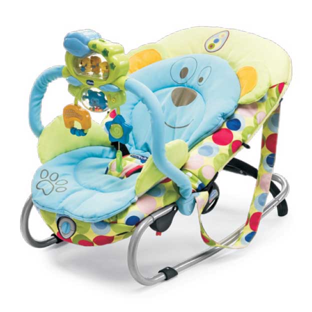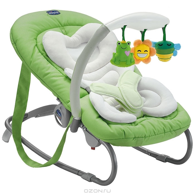 У нас был чикко такой. Он с вибрацией. Там музыка, мишки танцуют, звездочки мигают и т.д.. Много разных положений спинки в том числе и полностью горизонтальное положение, ремни безопасности, но я ими почти не пользовалась т.к. стоял на полу.В общем осталась им довольна. Хороший шезлонг. К стати он в нем когда дрыгал ножками сам себя укачивал))). Я поэжтому его еще больше полюбила