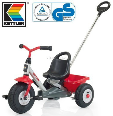 Родительская ручка-толкатель металлическая с пластиковой рукояткой. Высота рукоятки от уровня пола 95 см., с регулировкой по высоте в 3-х положениях (до + 4 см). Используется только для толкания (рулем не управляет). Легко устанавливается и снимается, разъемная, складывается пополам.