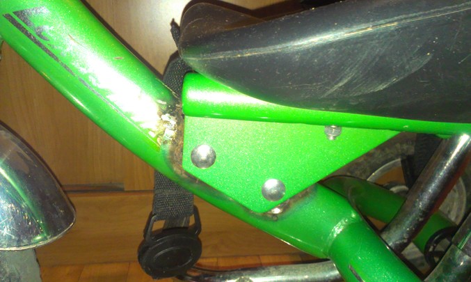 Все было бы хорошо, но меня раздражает следующий момент, велик состоит из двух частей: самой рамы и ручки, которая крепится к раме на винты.