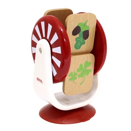 Отличная штука! Деревянная карусель на присоске Brio, с одной стороны зайчик - с другой морковка и т.п.