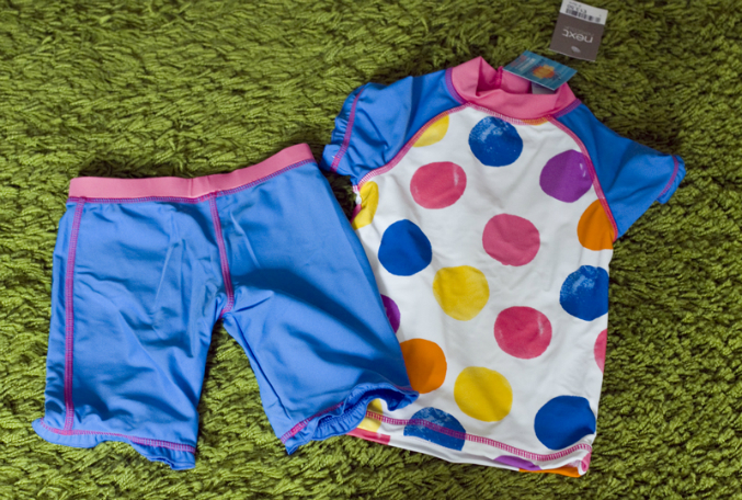 Только хвасты! (одежда и обувь)Сравнив цены на пляжные костюмы Next в торговом центре (1200) и на сайте (900), решила заказать из Англии. Костюм обещает защиту от вредных лучей, что нам очень пригодится в отпуске, потому что за один день, когда в Москве было очень тепло, у Яны явно покраснело лицо.