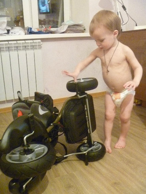 Пересмотрела множество велосипедов ,и лексусов, и смартов, ну ничего не приглянулось. Работала в детском, тестировала многие модели ,поэтому примерно знала что из себя представляет та или иная модель. Опять же хотелось чтоб ребенок чувствовал себя комфортно, ехать было мягко ,удобно родителям, устойчивость ну и ремни или бампер ,т.к он у нас еще та егоза! А еще колеса, чтоб не гремели при езде на асфальте ,но и не надувные!
