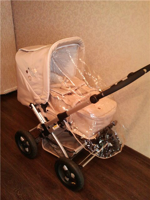 В комплектации коляски: дождевик и москитная сетка (крепятся на молниях к капюшону), накидка на ножки (маловата для старших детей), отличнейшая сумка для мамы (красивая, с вышивкой, много карманов снаружи и внутри, регулируемая по длине ручка, внутри слой материала как в сумках-термосах), съёмный бампер с дополнительным чехлом, насос.