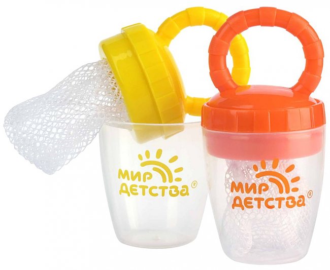 У нас такой был второй. Клевый!!!! Сеточка не вылетает даже если большие усилия приложить, в отличии от мира детства. В комплекте еще есть еще вторая сеточка, что очень удобно (когда первая приходит в негодность... от банана чернеет). Ребенку удобно держать за это колечко. Пользовались им, пока сами жевать не научились. Очень понравился, рекомендую)))