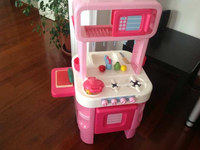 ИгрушкиКупили кухню,нам год и девять,дочка сама подошла в магазине к ней с живейшим интересом:) Пластмасса качественная,звуковые эффекты присутствуют,духовка мойка и тд.Так же в наборе аксессуары в виде сковородки,солонки,и немного продуктов,в общем рекомендую:))