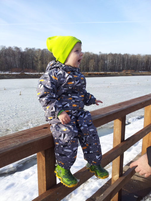 Прогулялись по парку, посмотрели уточек, полазили по сугробам и лужам, горки, качельки-ну все по полной программе, комбинезон все достойно выбержал, и мелкий нисколько не замерз. Чудо рейма!