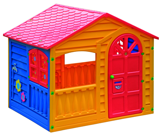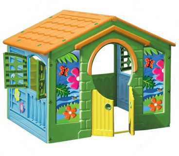 А такие домики, я видела только в детских игровых комнатах. Еще в детском саду. В саду на улице стоит, пластик от солнышка и дождя испортился. Домик имеет унылый и облезлый вид.