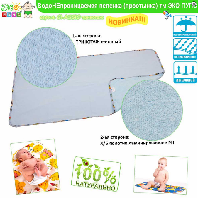 Я купила многоразовую пеленку ЭКО-пупс премиум бязь 50 на 70.Очень симпатичная и приятная,ну а в деле будет видно)