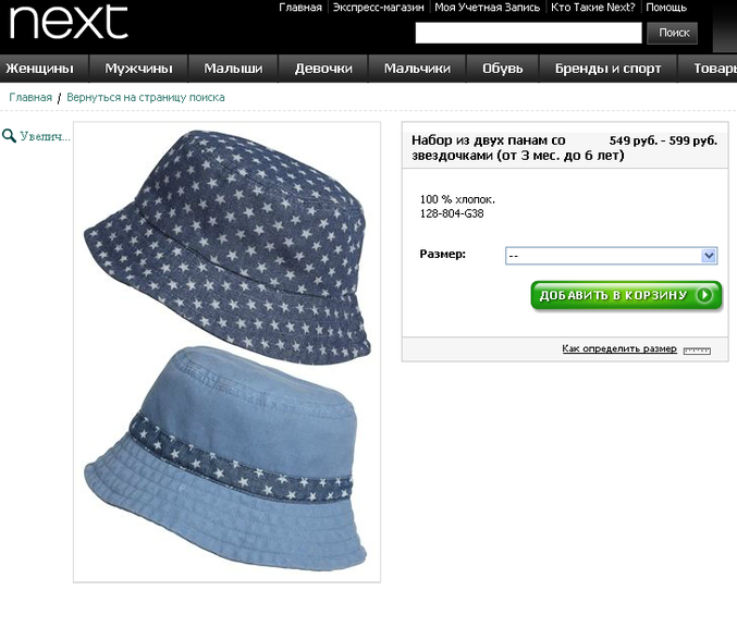 Татьяна, именно по этим панамкам. Взяла размер 1-2 года. Сейчас у ребенка голова 52 см. Та, что джинсовая в звездочки как раз, может быть с небольшим запасом. Думаю, на лето хватит. Та, что синяя х/б то ли была изначально меньше (у Некста такое в комплектах бывает), то ли села после стирки (хотя все стирала на 30 градусах). В общем, она налезает с большим трудом, носить ее нельзя.(((