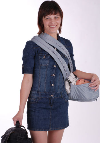 Как вариант слинг с кольцами, прекрасно мне помогал убираться дома, кормить в людных местах грудью.