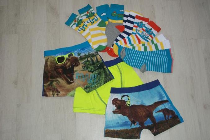 Радужные носки и трусы с динозаврами, мой ходит и рычит
