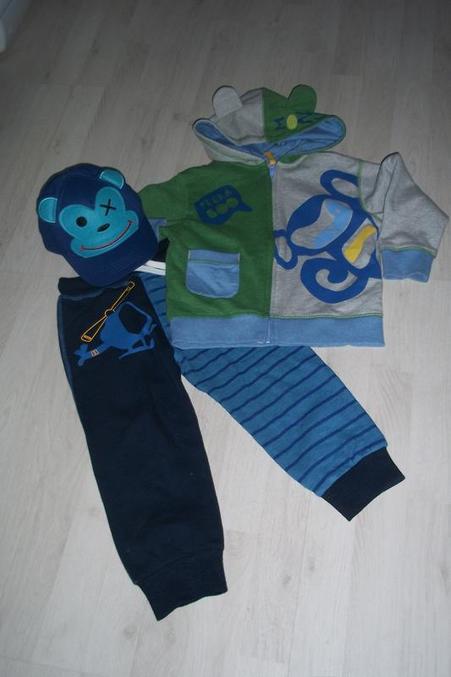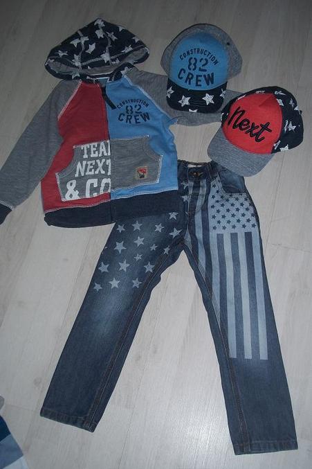 Толстовка, штаны и кепка от Некста, старалась в одной темке подобрать: