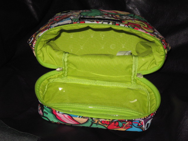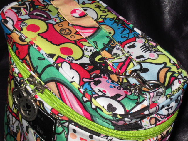 И по ткани Иконик. Я наковыряла маленький кусочек на ремешке, где видно изнанку - изнанка без резиновой накатки, как у Битвина, Олла, Беттера и т.д. Я люблю с накаткой, т.к. без нее - это просто обыкновенная плащевка в "рубчек". Мне не понравилось качество колечек на которых висят "монетки" на бегунке молнии - они не смыкаются до конца, остается зазор, за который будут цепляться вязаные вещи, кроме того эти колечки разгинаются и можно потерять "монетки". В этом отношении бегунки обычного Жужуби (не Токи) с камушками мне нравятся больше, нахожу их более качественными, кроме того, они не звенят, как эти.
