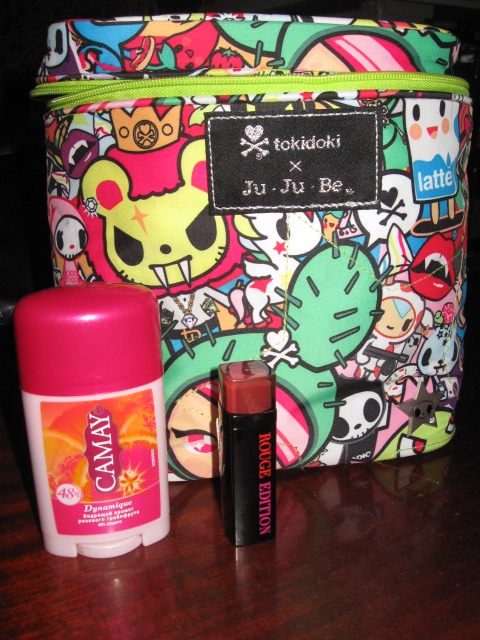Сумку можно покавать косметику. Вото фото с помадой и дезодорантом для сопоставления размеров: