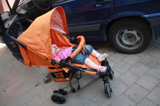 Покатать мне его было негде, в городе ни одного бебика.. (думаю, скоро появятся, как люди поймут)))) Поэтому заказывала по интуиции, и надеясь на объективные отзывы. Покупала в Германии на максис бебивелт(вместе с автокреслом), оплатила 17 апреля, забрала свои покупки 15 мая, итого меньше месяца! Экономия вообще нет слов какая... одно только кресло тут стоит 16 тыр, а оттуда обошлось ровно в 2 раза дешевле(даже с учетом доставки). В общем, всё пришло, собрали за 3 минуты, вытащили спящую дочь из машины, погрузили ее в новую тросточку и пошли гулять)) дите проспало еще почти два часа! Ей было настолько комфортно, она разлеглась там, как прынцесса и смотрела свои сладкие сны) Вот, полюбуйтесь!