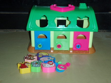 ключи там подразделяются по цветам и формам. нам этот домик очень нравится. клюси плюс сортер и еще кнопки разные (нажать, отжать, повернуть и т.д)