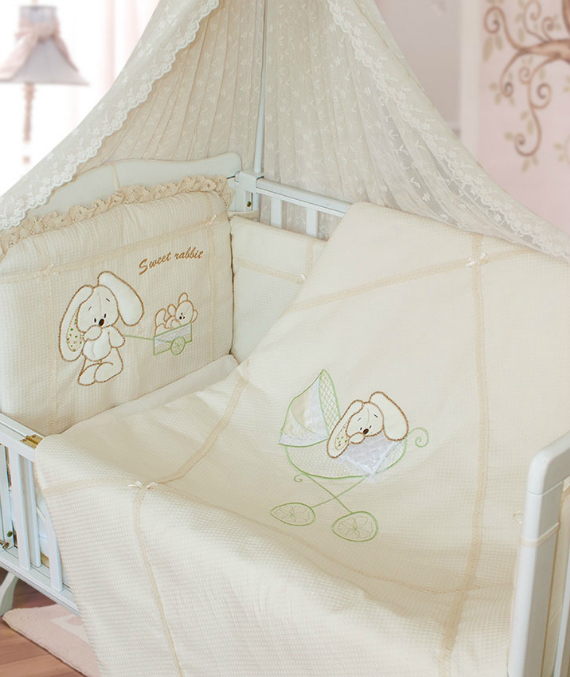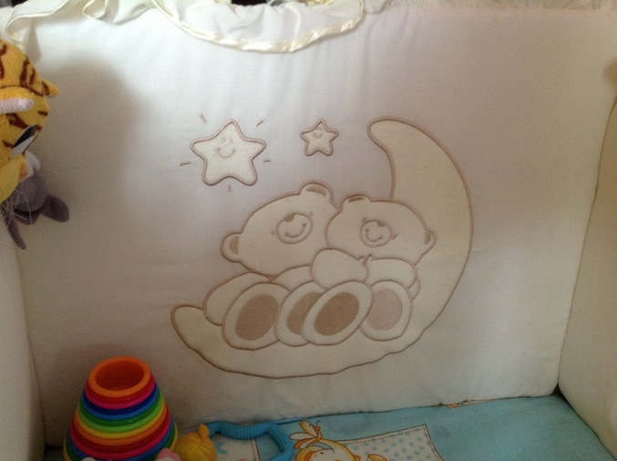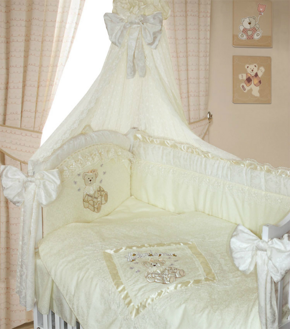 Ага, балдахин, подушка, одеяло, борты и постельное тоже с мишкой. Производитеоя не скажу, ярлыки с бортов срещаны, а покупал муж еще в период беременности