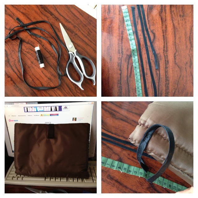 Аксессуары и доработки колясокВсе знают наверное, что у воло нет кармашка сзади (например как у квеста) мне его очень не хватает, пока родная сумочка идет, я решила, что нибудь придумать:) полезла в свое хранилище сумок и наткнулась на такую штучку! Это вкладыш в сумку портфель:) для ноут бука! Я ей никогда не пользовалась, в ней хранилась всякая мелочь в шкафу:) достала-приложила-подходит:) взяла ленту, разрезала на вязочки (все из пордручных материалов) то что есть дома! 5 минут и вот, готово:) вечером хочу зайти в ткани купить и сшить что то типа чехла, а то коричневый цвет не очень то подходит..:) думаю как временный вариант очень даде удобно!!;)