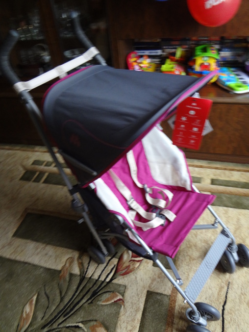 А тут встала необходимость покупки легкой коляски на море, выбирала между Сайбексом Руби и Маклареном Воло, видела и катала обе коляски, но так и не определилась. В воскресенье поехали на Совенок. думала опять посмотрю, сравню и выберу. Но Руби там уже не оказалось. Решили взять Воло. Очень я хотела морскую расцветку, но бюджет был ограничен и переплачивать тысячу за расцветку посчитала нецелесообразным. И мне понравилась наша расцветка-серо-малиновая)))