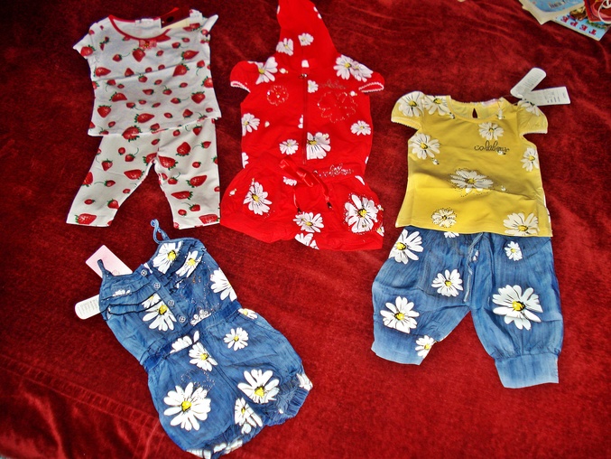 А мы шортики, футболки, юбочки носим размеров 80-86. Одна юбочка даже с маркировкой 3-6 мес. есть. Только брючки и кофты с дл. рукавом беру на рост 92-98, что бы в длину и рукава короткими не были, только всегда спрашиваю ширину. В основном в ширину всё спадает и утяжки не помогают. Сейчас набрала футболок на рост 80-90 и то большиваты. Вот, блин, проблема.