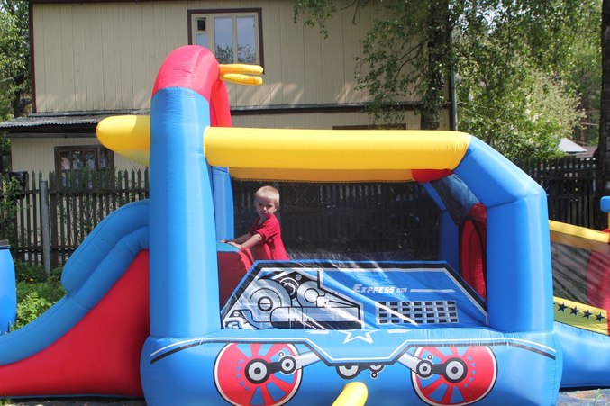 тоже думала об этом варианте. и придумала надувной батут с горкой, потому что бюджет ограничен, а хочется всего и побольше. Все-таки на даче мы будем 3-4 месяца, чем-то надо ребенка занимать постоянно. А тут и горка и батут в одном устройстве. Еще он яркий, красочный.