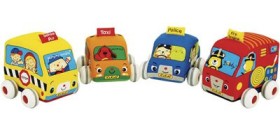 Я первую в икеа купила, тканевую. Там набор машинка со вкладышами в багажник и трактор с бороной на липучке. И месяцев в шесть купила типа резиновой с пластмассовыми колесами в кораблике. Наподобие таких еще в ашане есть. Я бы не сказала , что его сильно интересуют машинки. Нам больше разнообразные коробочки картонные нравятся)))