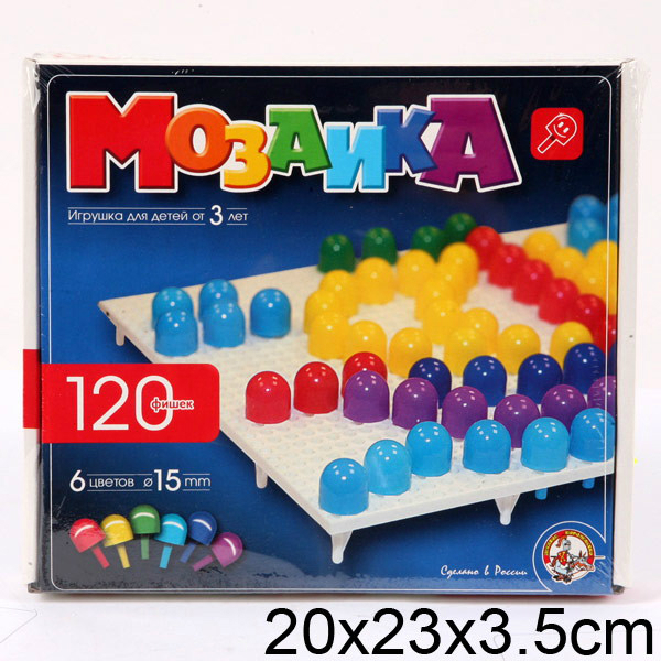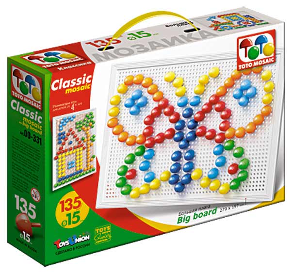 нам столько же, у нас есть такая мозайка (я выбирала с крупными фишками). Пока учимся правильно вставлять, поэтому занимаемся ей 2, 3 раза в неделю минут по 10, и только под присмотром