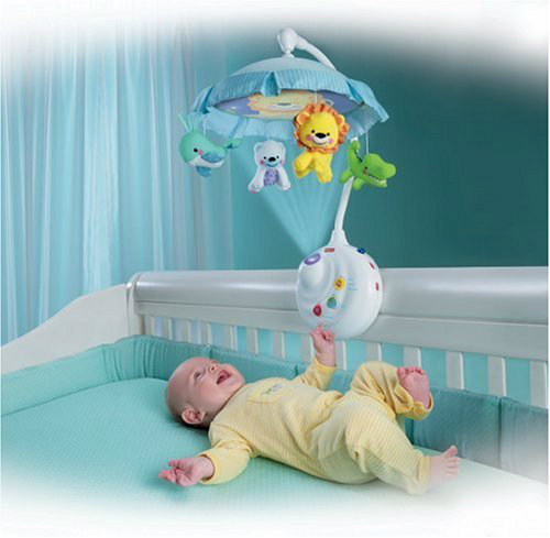 Мне нравился,ребенку тоже,приятная музычка,2 уровня громкости,очень уютная подсветка,купол можно снять и вечером включать проекцию на потолок.Мой пацан оторваться не мог))))Пользовались до 8 месяцев почти,потом стал вставать в кроватке и все...капец мобилю))))сняли продали