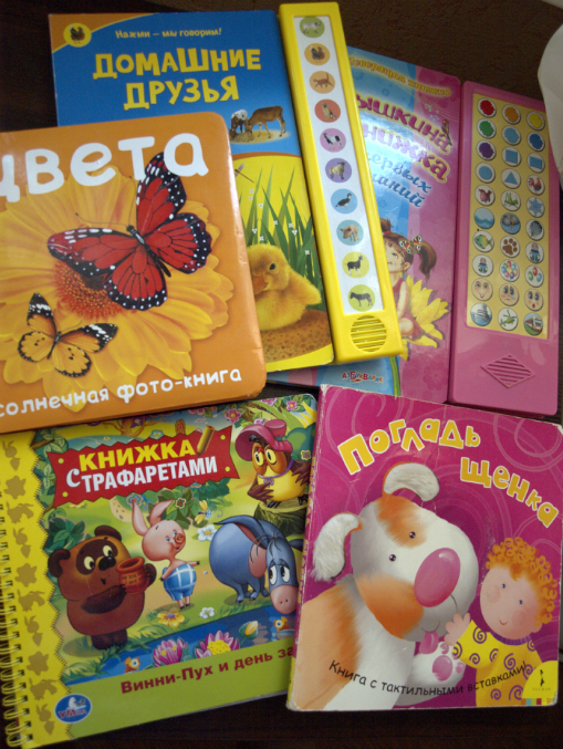 Книги,отличная серия,среднего размера,толстые странички и яркие,оч любит.