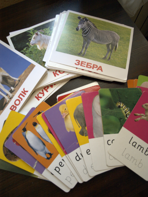 Карточки.ООчень увлекательно,по тысячу раз рассказываю какие животные изображены.Я их уже тихо ненавижу,сын любит)