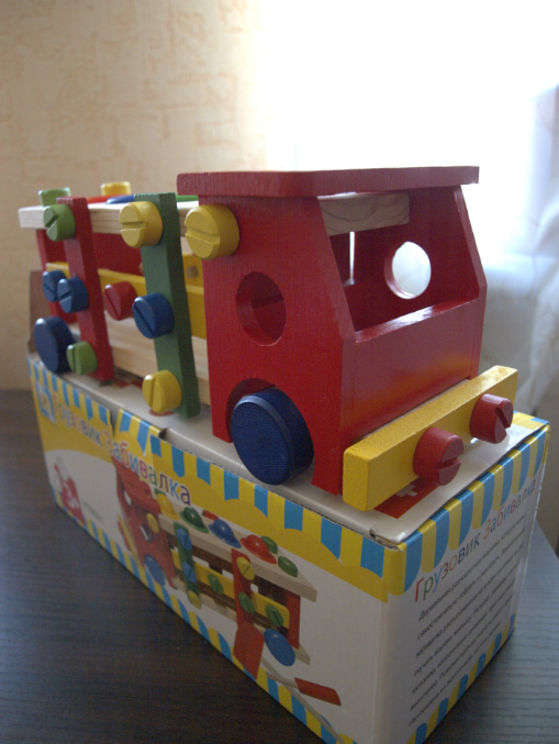 Грузовик.С молоточком и отверткой.Отвертку я успешно сразу же сломала,но откручиваем пальчиками.Гришке нравится,мне не нравится обратно всё закручивать)