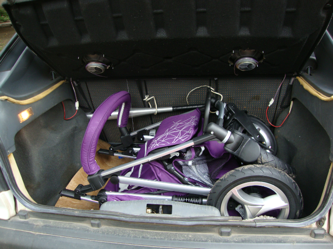 собираем, и скару примеряем в багажник! место конечно достаточно занимает, но влазит без особых усилий и даж место для сумки остается! первое испытание прошла хорошо!