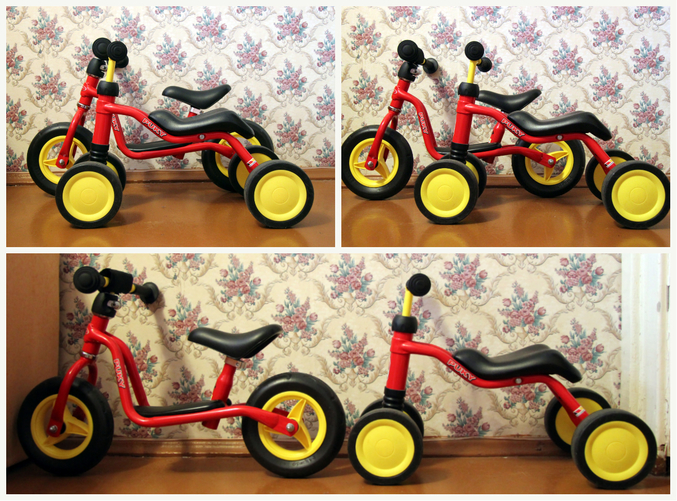 классный отчетик!! У нас был puky wutsch, прожил он у нас недели и я поспешила от него избавиться пока весна и лето. Очень нравится puky, у нас велосипед есть этой фирмы. Решила беговео прикупить, Лиза моя на него села в 1,8. Рост у нее 80 см. Когда отталкивалась и ехала назад или вперед, постоянно наезжала себе на ноги. Перебирать ногами не удобно из-за сдвоеных колес. В итозе дочка к нему почти и не подходила. На улице каталась ровно 1мин. Короче я его продала. Хочу купить двухколесный, думаю он будет удобней. А в этом четырехколесном я разочаровалась. К примеру есть у нас пластиковый беговел Веларти, вот на нем очень удобно кататься, но Лиза моя к беговелам и самокатам как-то равнодушна абсолютно!! Дж и не знаю будет ли на них кататься ))) хотя мне так хочется чб каталась на пуки, они такие классные ))) Вот какие детки разные ))) Альке видно нравится беговелы. Смотрится на нем отлично!! Спортивная девочка )) А моя только танцевать целыми днями готова ))