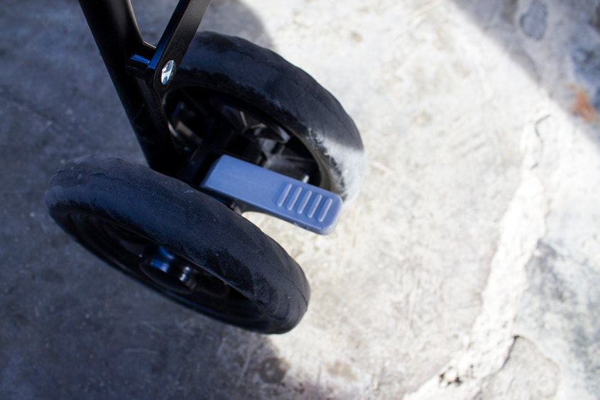 Тормоза пластиковые, я им не доверяю. Держу коляску еще и рукой, или колеса выворачиваю, чтобы был дополнитльный упор