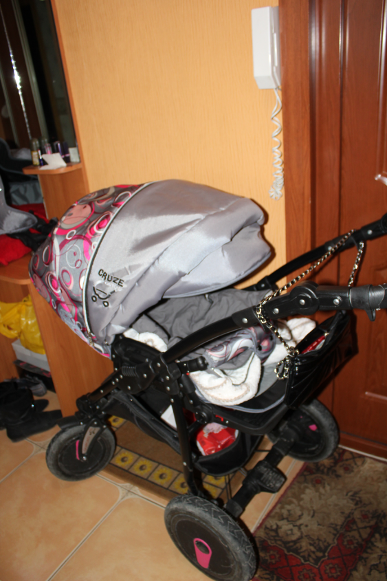 По тому времени-это моя третья коляска! И Коляс классный!!!!Нашла наконец свой идеал. Без усилий шасси помещается в багажник(при моих 40кг)очень легкая рама Люлька очень просторная, моя ляль спит как в кроватке раскинув руки и ноги в свои 7 месяцев! Легкая!!!С шасси снимаю люльку с ребенком и без проблем сама помещаю в салон. Имеются удобные выемки по бокам и ручка на капюшоне для удобства снятия. Люльку снимать очень легко и удобно. А вот прогулочный блок мне Тяжело снимать без этих ручек с лялем(7 месяцев) внутри(мужу без проблем). 4 положения спинки, в положении полулежа кап опускается до бампера!!(по мне так даже очень классно! Защищает от ветра, любопытных глаз и дождя, кстати о дождевике: уж очень он удобный, прозрачный и мягкий! Прогулка оснащена 5ти точечными ремнями безопасности,но ребенку она толком не нужны, в сидячем положении держится за бампер и никуда не вывалиться или опрокинеться из коляски, высокие борты (бампер съемный и откидывается в сторону). Продумана система снятии/постановки блоков на шасси. Просто сверху поставил и оно закрепилось и наоборот, кнопочки нажал, разблокировал, вверх поднял-снял! В комплекте коляски сумка(очень большая, войдет все!)москитная сетка, дождевик, насос(но мы им не воспользовались, какой то он неудобный, пришлось один раз съездить на шиномонтаж и готово!) амортизация шикарная! Ход плавный и мягкий!!впервые выйдев на улицу, я ощутила кайф-легкость и наслаждение при прогулке!! А еще она очень невесомая, всего 11кг! И при ветре, я думала коляску сдует)) ну это я так)) к тому что у нее идеально управление одной рукой! Что касается клрзины для продуктов, вот тут уж я ее протестировала!!!!два пакета набитые едой, вошли и что удивило больше всего: ход коляски остался прежним: легким!!!будто я ее не нагружала!!Ширина шасси 58см-входит в маленький лифт. Входит в пандусы, правда только задними колесами. В общем очень довольна покупкой!! Гуляем с дочей на обоих блоках, по настроению!) рекомендую в частности эту коляску мамам, которые живут в доме без лифта! Коляска очень "прыгучая" на задних колясах прекрасно спускается по ступенькам не тревожа спящего малыша! Но сразу предупреждаю, поднимать на задних нагруженую продуктами не то чтобы тяжело-нет, жалко колеса!! А так все ок! Ну и фото