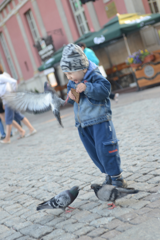Третий день путешествия, вечерний выезд в город, уже побольше сил, стало теплее, скормили голубям запасы хлеба.