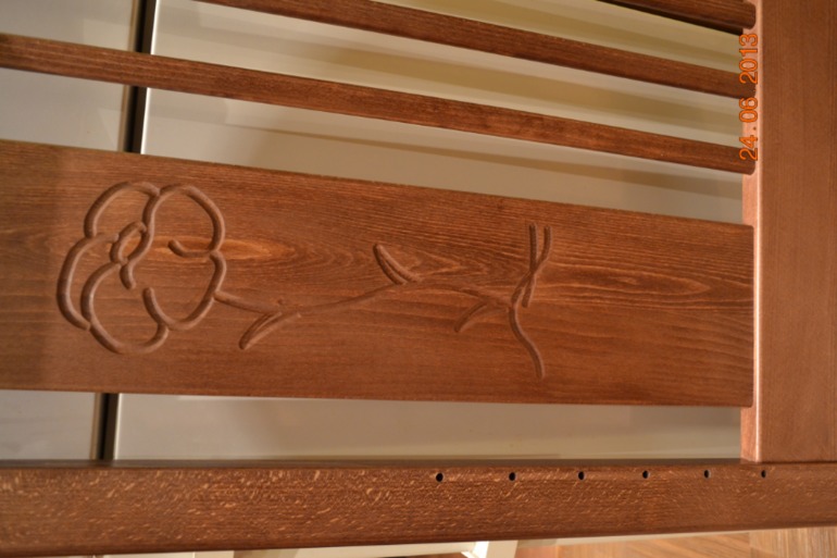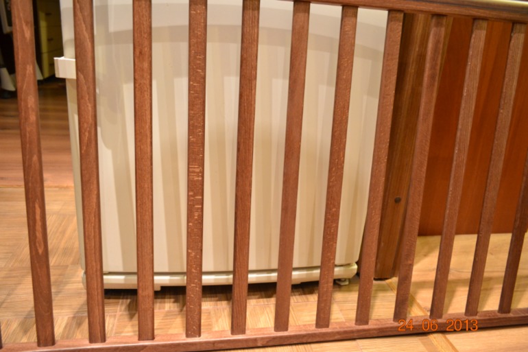 Подкупило 6 положений ложа и стенка, опускающаяся под кровать. Видела в реале в Лапси на Электрозаводской, смутил только цвет, он вроде орех, но какой-то блеклый. Сделала заказ в магазине маркет.рф, первый раз нужного мне цвета не оказалось в наличии (прям как предупреждение, надо было тогда сразу заказывать другую). На следующий день позвонили, сказали что появилась. И вот мне ее привезли... Конечно я не могу говорить, что вся продукция Fiorellino ужасна, возможно только мне попался брак, но после этого желание связываться с этой маркой пропало напрочь! Первое, что бросилось в глаза, непрокрашеные стенки, окрас какими-то каплями, кругами. Муж ее все же собрал. Сфотографировать ее в собранном виде я не успела, тогда была в состоянии шока, а потом мы ее разобрали. Самая жуть - это рейки у бортиков. Они шершавые, как наждачка. Бедный ребенок о них все руки обдерет. Как такое вообще поступило в продажу? Вот несколько фоток деталей.