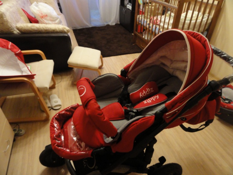 Коляски (только вопросы и выбор)Добрый день дорогие ББшечки)), наконец то я собралась написать фото отчет о своей коляске, которую мы с мужем купили еще полтора месяца назад, начну с того, что выбирала я коляску долго у меня был ряд приоритетов, которые обязательно должны были быть в коляске, это большая люлька т. к собираюсь ею пользоваться осенью и зимой, а там всякие конверты комбенизоны, вообщем ребенку должно быть комфортно, далее чтобы со всех сторон закрывалась и по максимуму была не продуваема,, относительно легкая, ширина колесной базы не превышала 60 см, т. к у нас нет грузового лифта. Очень мне хотелось купить Peg Perego GT3 люлька+ прогулка и цена в принципе не смущала, ну уж очень она мне нравилась и нравится до сих пор, но к сожалению для нашего лифта она большевата. Итак остановила я свой выбор на коляске Tutis zippy pia 3 в 1 цвет красный лен. Фото и описание прошу подкат.