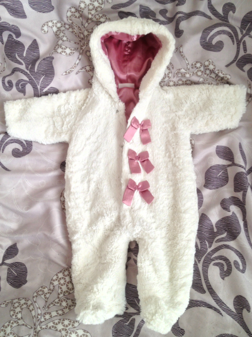 комбез FAN&FAN на холлофайбере! пинетки на кнопках, а рукавички на верёвочке! Продавался со скудным мехом, поэтому родной мех был отстёгнут и пришита опушка с атласными бантами hand made! мы его взяли из-за того, что у нас нижняя меховушка была тоже с тремя бантами вот такая