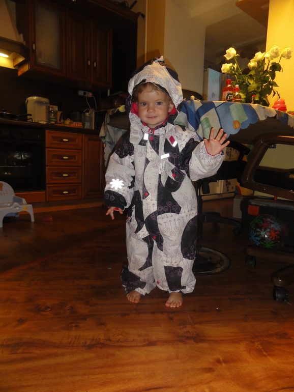 я бы поменяла. У нас сейчас рост около 82, демисезонная рейма 74 размера отлично сидит. На зиму взяла 80, запас хороший там. Мне кажется, когда комбез сильно велик, ребенку неудобно ходить.
