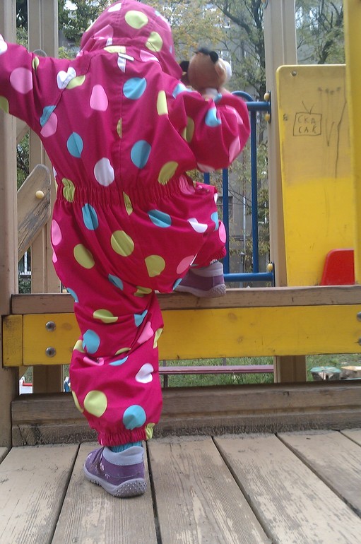 ребенок еще подрастет, начнет залезать на горку и вы поймете, что хорошо, что не поменяли...Только вот в сапоги заправлять не надо)))