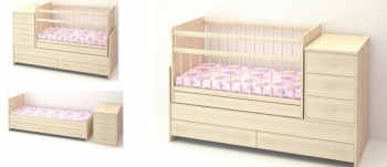 В любой детской кровати размером 120*60 по внутренним габаритам. Опускается боковина. И снимается вообще... даже за 2 тыс рубл. Только в комплекте с кроватью должна быть планка 120 длина а ширина ее см 5. Играет роль стяжки кровати. Крепится, и стягивает кровать чуть выше уровня ящика. Еще плюсом, стягивает кровать основа для матрасика. Я купила себе кроватку.. Вот такую http://www.rant.ru/catalog/ip_tovarkin_arkhangelsk/krovat_detskaya_viktoriya_14_3_1_universal_mayatn_yashch_/ в белом цвете. Маятниковую. Она как и продольный и поперечный делается. Раньше, кровати Можга делали из так скажем пресованых опилочек и ламинировали их. Сейчас пишут, что либо сосна, либо береза. Ну а вообще, Архангельск нам очень понравилась. В сборке.. Быстро собрали, смотрится отлично, мягкий ход, силиконовая накладочка ( зубки точить),нат дерево, и чем хороши маятники, у них ящик глухой. А цена приятно радует. Такого плана кровати от 12000 тыс . Мы купили за 9000. Белые,голубые, розовые, слон. кость) они всегда дороже коричневых на 1 тыс минимум.