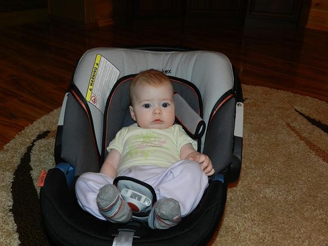 Вам до 1 года надо ездить против хода движения.В сайбекс рано. У Вас малыш будет подбородком на столике лежать, в лучшем случае.