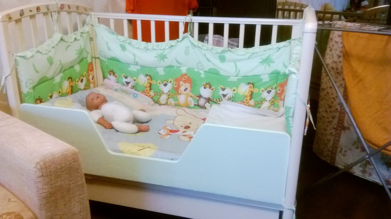 тоже долго думали и маялись незная какую кровать купить, а потом муж рещил сам сделать бортик и вот такая кроватка получилась