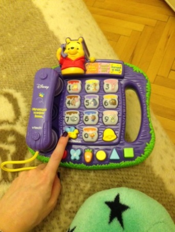 Ой, телефон вообще замечательный. У нас уже не первая игрушка этой фирмы, но это особо полюбилась. В нем 3 программы обучающих, все что хочешь – цвета, фигуры, буквы, цифры. Надо повторять за ним, звонить другу и все такое. Очень клевый)) Кстати, голос винни настоящий))