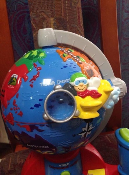 Называется обучающий глобус, тоже супер вещь! Подарили как бы на вырост, но уже сейчас в самый раз. Все интересно, даже мне)
