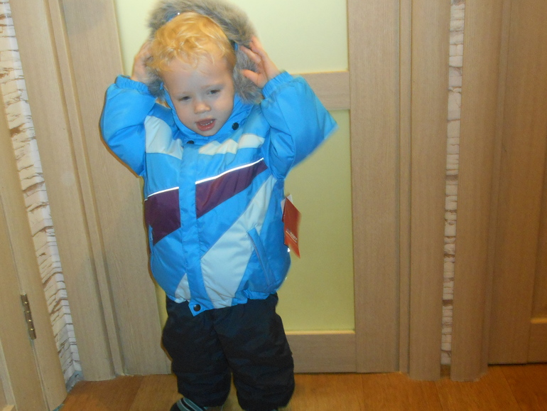 На фото ребенку 88 см. куртка с опушкой зимняя утепление 320 или 330 гр. р. 86 . на зиму хватит, по длине запас хороший, по рукавам- запас не большой, на следующий год рукава будут мал\оваты, но если очень захочу эту куртку на след. год- нашью манжеты.